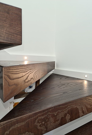 Diverse personalizzazioni possibili sia per quanto riguarda la finitura dei gradini, sia per la realizzazione della ringhiera e del corrimano, con anche la possibilità di integrare un’illuminazione led segna passo.