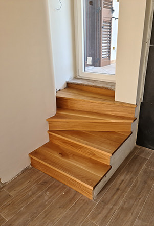 Struttura, gradini e corrimano sono realizzati con assemblaggio finger joint, con la possibilità di scegliere tra diverse essenze di legno come faggio, frassino, rovere sloveno, pino di Svezia, okumè, tutte ideali per le scale di legno per interni perché associano elevata durezza a un’ottima resa estetica.